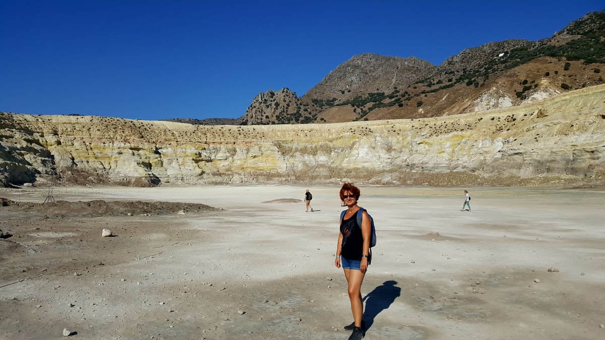 Sehr interessant war ein Ausflug auf die Vulkaninsel Nissiros, bei einem Spaziergang durch den Krater sieht man noch Gase ausströmen und der nahe Ort ist besonders reizend um dann die Aussicht bei einem Glas Mandellikör zu genießen.