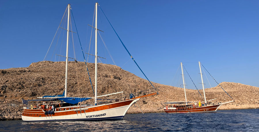 Mit einem kleinen „Gulet“ gings von Rhodos Stadt nach Symi, Tilos und Chalki.