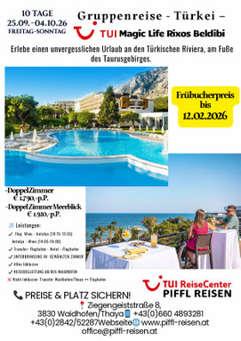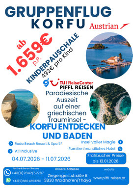 Preis: € ab € 1.659,-- p.P. und € 492,--p.Kind