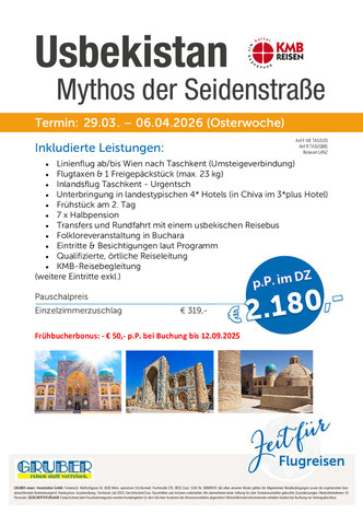Der genaue Reiseablauf ist bei uns im Reisebüro ersichtlich!
