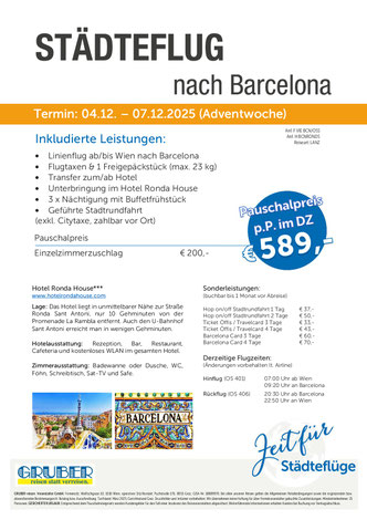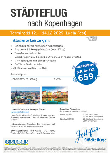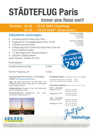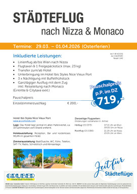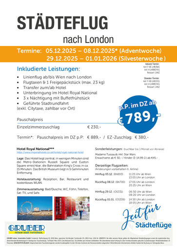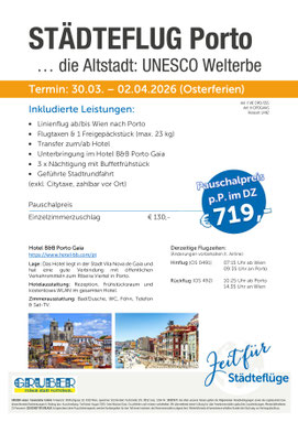Preis: € 269,-- p.P. im Doppelzimmer ab/bis Wien